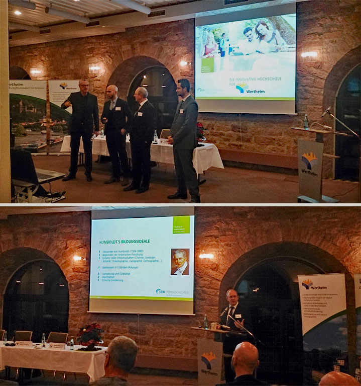 Die Vorträge der Betreiber der SRH Fernhochschule waren sehr interessant und informativ wovon besonders einige Vertreter von den Anwesenden Firmen angetan waren. Natürlich stehen besonders die Fragen im Raum was eine Fernhochschule für Wertheim bringen kann und was die Betreiber der SRH von der Stadtverwaltung Wertheim erwarten.