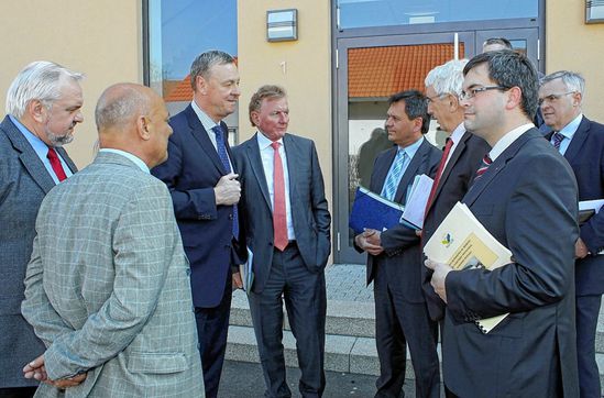 In einer ersten Gesprächsrunde stellte Stefan Mikulicz den Gästen die Stadt vor und betonte unter anderem die hohe Bedeutung der Ansiedlung der damaligen Landespolizeischule für die Entwicklung des Konversionsgebiets Reinhardshof zum Stadtteil. Die Akademieaußenstelle sei in allen Belangen "ein hervorragender Partner, sie bringt Leben in den Stadtteil", der wiederum "sehr, sehr stark darunter leiden würde, wenn die Einrichtung geschlossen würde".