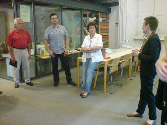 In der vergangenen Woche besichtigten die SPD-Gemeinderatsfraktion und das Vorstandsteam des Ortsvereins das Staatsarchiv in Bronnbach. Kurzweilig und informativ führte Dr. Monika Schaupp, Leiterin des Archivverbundes Main-Tauber, durch den Lesesaal und das Magazin und vermittelte dabei mit ansteckender Begeisterung einen umfassenden Einblick in die Arbeit des Verbundes. Der Zusammenschluss des Staatsarchivs Wertheim, des Archivs des Main-Tauber-Kreises und des Stadtarchivs Wertheim unter einem Dach biete den Archivnutzern – von Wissenschaftlern über Heimat- und Familienforscher bis hin zu Schülern – die Möglichkeit, einen umfassenden Einblick in die Geschichte Main-Tauberfrankens vom hohen Mittelalter bis zur Neuzeit zu erhalten. Nach Ablauf der Sperrfrist stehe es jedermann frei, das Archivmaterial zu nutzen. Einige der darunter befindlichen Schätze bekamen die SPD-Mitglieder zu sehen wie beispielsweise die kunstvoll gestaltete Chronik des Frauenvereins oder die Wertheimer Stadtrechtsurkunde mit dem Originalsiegel aus dem Jahr 1306. Daneben biete der Archivverbund, wie Schaupp erklärte, auch eine wissenschaftliche Bibliothek mit zusätzlicher Fernleihemöglichkeit. Ihre Anerkennung sprachen die Mitglieder der Fraktion und des Ortsvereins auch für das breite kulturelle Programm des Archivverbunds, das von Schriftkursen bis zu Angeboten für Schüler reicht. Ein weiterer Grund für den Besuch der Wertheimer SPD bildete jedoch auch die immer größer werdende Raumnot des Archivs. „Zu den sechs Kilometern an Regalen kommen jedes Jahr weitere 80 bis 100 Meter hinzu.“, berichtete die Leiterin des Archivverbundes. Man könne nur noch das Notwendigste in den Archivbestand aufnehmen und benötige in absehbarer Zeit mehr Raum. Optimal sei eine Lösung auf demselben Gelände wie beispielsweise ein Umbau der alten Scheune oder ein Anbau direkt am bisherigen Magazin. Sowohl die Gemeinderatsmitglieder als auch die Mitglieder des SPD-Vorstandes erklärten, man habe die Bedeutung der Aufgaben des Archivverbundes und die Notwendigkeit der Schaffung von mehr Archivfläche erkannt und wolle sich dafür einsetzen, dass eine sowohl kostengünstige als auch räumlich günstig gelegene Lösung gefunden werde.