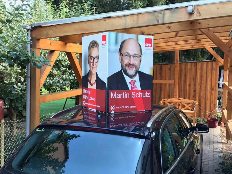 Ein Produkt von einem Wertheimer Traditionsunternehmen sorgt dafür das Martin und seine Mitstreiter auf dem Autodach auf Position gehalten werden. Die Powermagnete sind ein wichtiger Bestandteil um die Plakate auf dem Autodach zu befestigen. Eine gute Produktwerbung und das mithilfe der SPD. Ist halt Qualität “Made in Wertheim“. ![]()